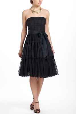 | The waist of the dress is embellished with a black ribbon (which could easily be replaced with another belt for a totally different look...), while the skirt of the piece is layered with black tulle. |